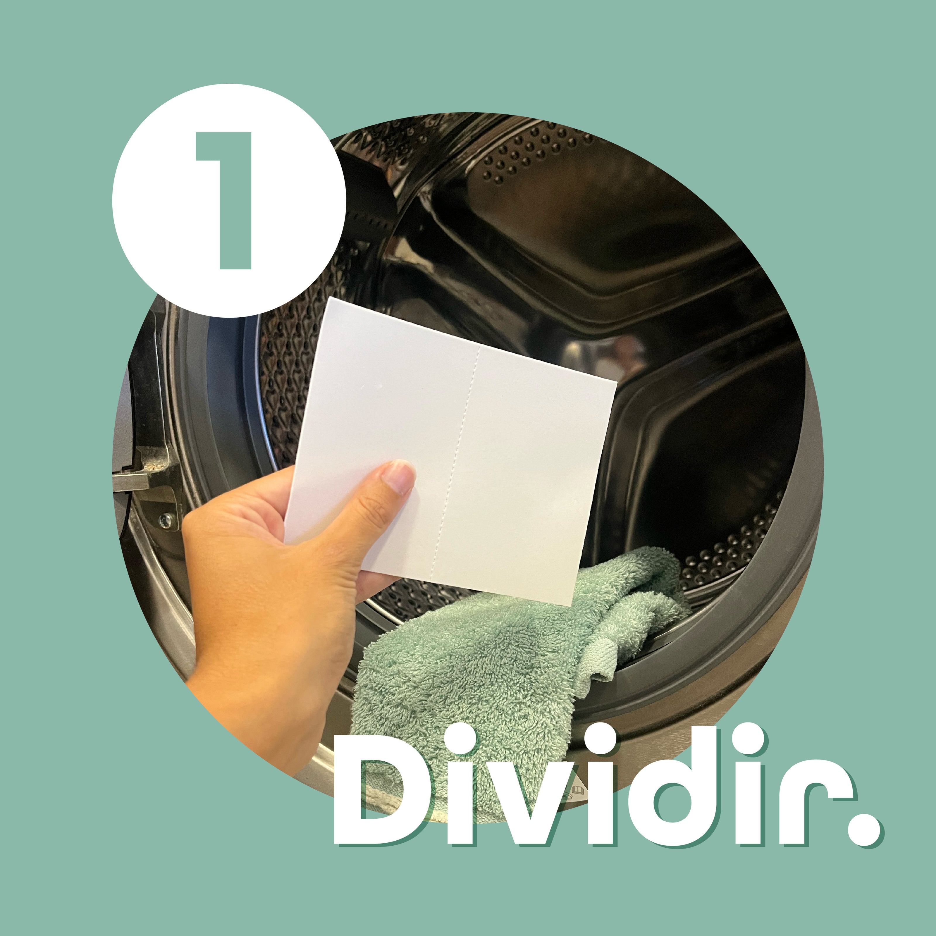 - Para lavados de 7-8kg de ropa, usa dos hojas (la tira completa).